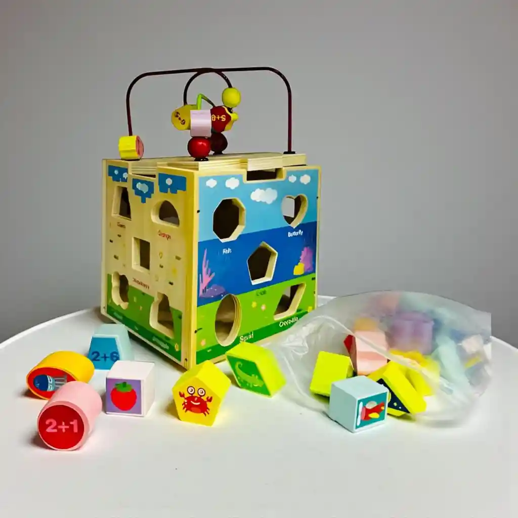 Descubre nuestro Cubo Encajable de Madera: una experiencia educativa y lúdica en un solo juego. Este cubo no es solo un juguete, es una herramienta de aprendizaje versátil que cautivará la imaginación de tus pequeños. Nuestro Cubo Encajable incluye piezas en diversas formas geométricas, lo que fomenta la resolución de problemas y el reconocimiento de formas desde una edad temprana. Además de seguir patrones de encaje, los niños pueden dar rienda suelta a su creatividad construyendo libremente, lo que estimula la imaginación y la creatividad. Con este juego, aprenderán conceptos como el espacio, la forma y la relación causa-efecto de una manera divertida. Además en la parte superior tiene un laberinto de cuentas para aumentar la diversión