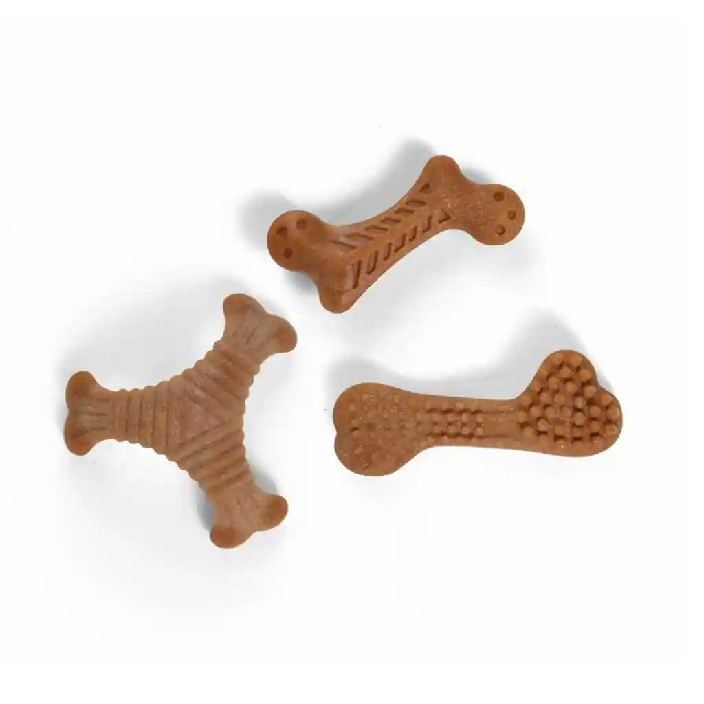 Hechos de fibra de madera y nailon seguir, imitando la textura de madera real. Para una experiencia de masticacion unica.