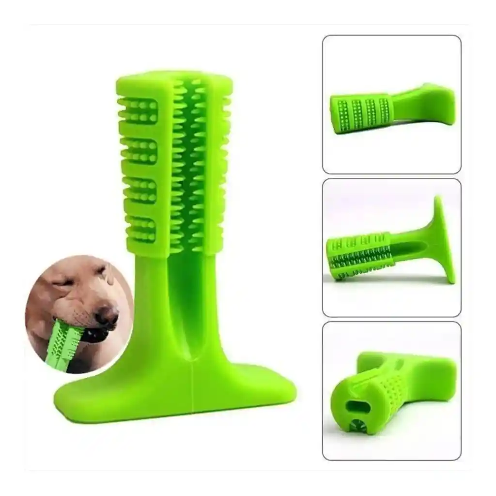 *Cepillo de dientes de juguete para perros de silicona, diseñado para la limpieza dental. *Funciona como un juguete masticable con un dispensador automático de pasta de dientes. *Ayuda a limpiar los dientes en ambos lados y está angulado para adaptarse cómodamente a la boca del perro. *El material de goma suave está diseñado para ser seguro para las encías de la mascota. *Contribuye a la eliminación del sarro y previene conductas destructivas. Características *Material: Caucho. *Color: Verde. *Textura: suave diseñada para estar segura en las encías de tu perro. *Tamaño: ( 17cms Alto x 6cms Ancho x 13cms de Base ).