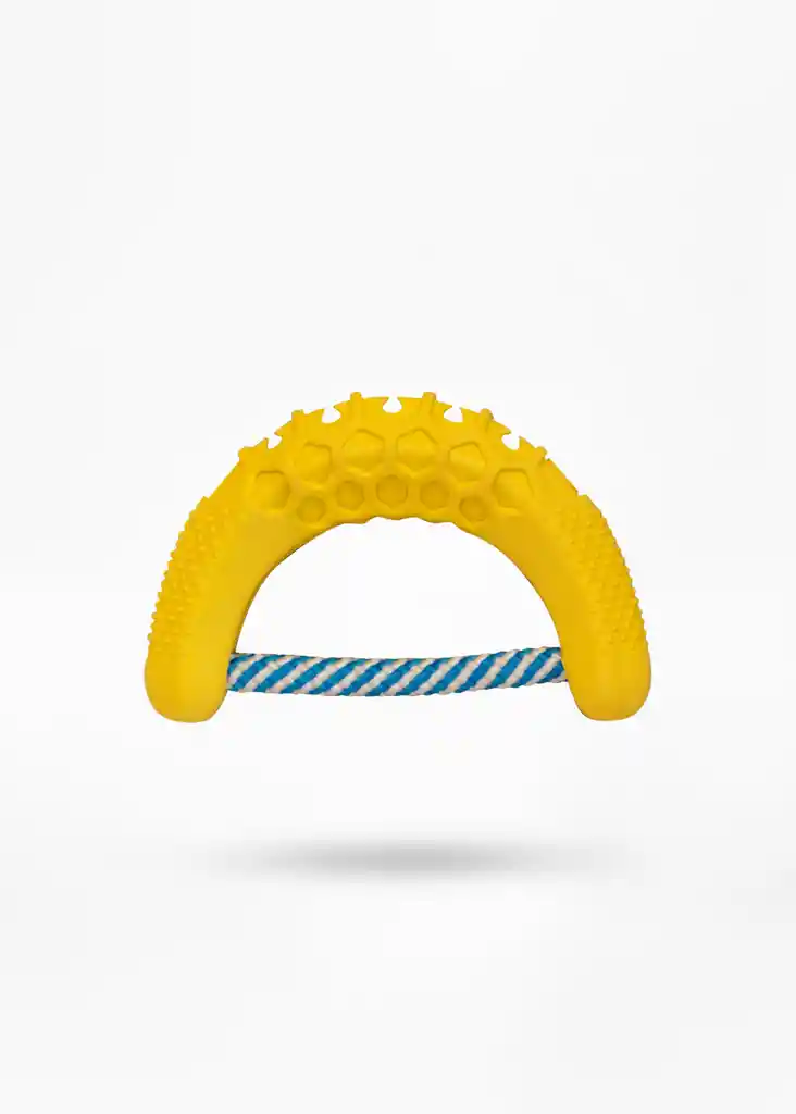 Juguete dental para perro, diseñado para masajear encías y limpiar dientes mientras juegan. Divertido, resistente y ideal para mantener una boca sana.