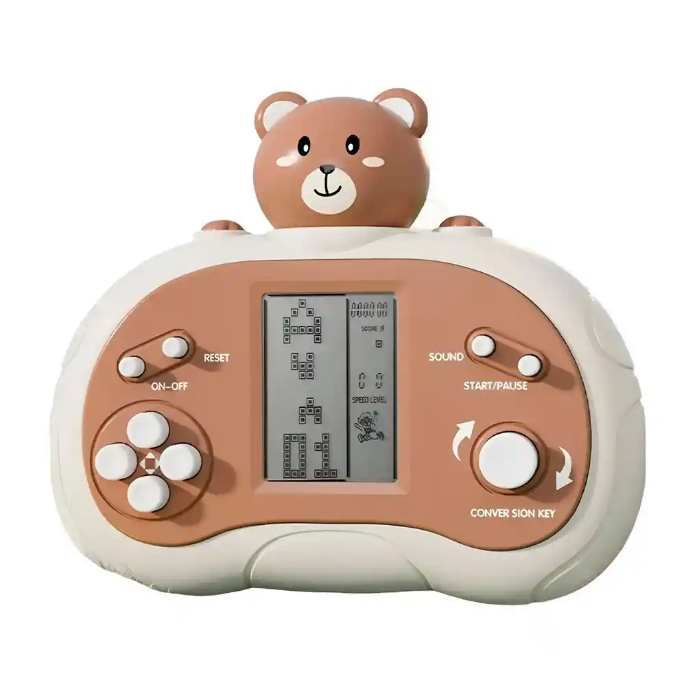La consola portátil Mini Game Bear ofrece horas de diversión con un diseño adorable inspirado en un osito. Su pantalla LCD y controles fáciles de usar permiten disfrutar de clásicos juegos de bloques, mientras estimula la coordinación y el enfoque de los niños. Ideal para pequeños gamers, combina nostalgia, entretenimiento y ternura en un solo dispositivo. /// El juguete incluye baterias /// Ficha Técnica: Dimensiones : 13 cm x 11 cm x 4 cm Funcionamiento : 2 Baterías AA ( Incluidas ) Material : Plástico ABS Edad recomendada + 3 Años Certificado de conformidad: SL-CS-210044 Referencia: JM-1089 189-3 ** _Para defectos de fábrica o retractos: \_Por favor revise el producto apenas lo reciba y antes de usarlo. No aplican ley de retracto o defectos de fábrica luego de usar el producto. Se manejan máximo 5 días para reportar defectos de fábrica (por ejemplo, producto funciona mal, piezas faltantes, rotas, etc). Para hacer efectiva la devolución el producto debe devolverse con el empaque original, el cual debe estar en buen estado, incluir todos los documentos y las partes completas y sin daños.
