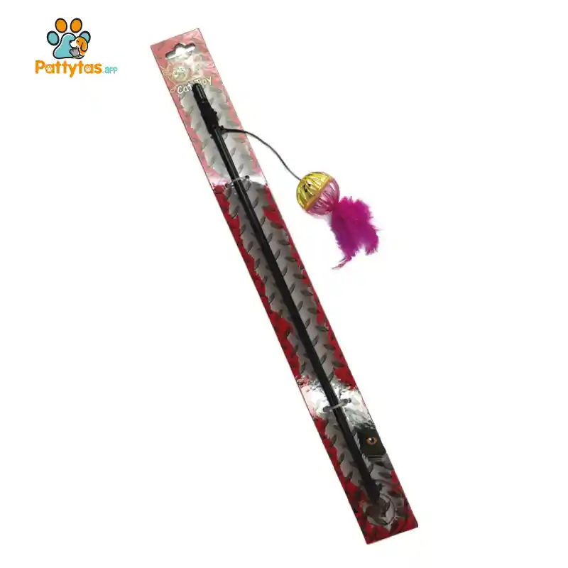 JUGUETE GATO CAÑA PELOTA CASCABEL PLUMA, cañita de pescar para gato interactivo, despertaran la curiosidad de tu felino, es ideal para que te conectes a la hora de jugar con tu consentido en el juego de perseguir y atrapar 🐾 * IMAGEN DE REFERENCIA: Colores y estampado varían según disponibilidad del momento.