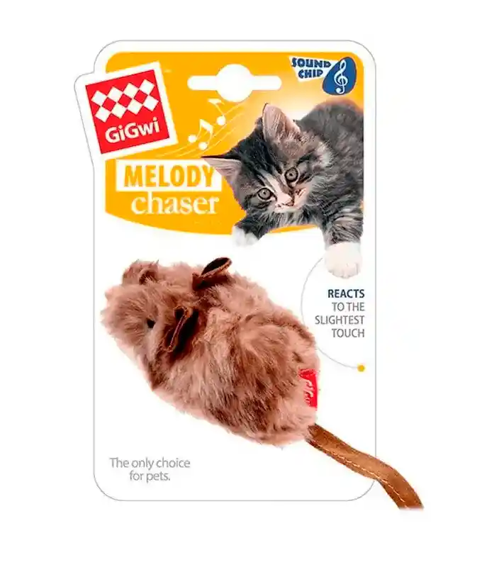 Mouse Melody incluye un chip de sonido que se activa por movimiento. Este chip reproduce sonidos realistas tanto de insectos como de animales pequeños que estimularan a tu gato a perseguirlos y mordisquearlos.
