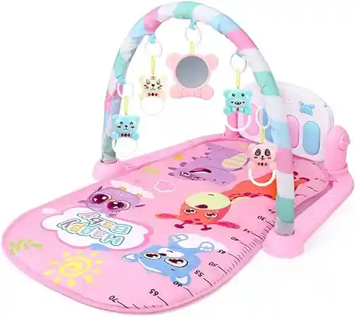 Juguete Gimnasio Infantil tonos rosado Ref 116-04. Los padres pueden estar seguros de que su hijo estara emocionado jugando en esta cómoda y duradera alfombra de piano para Bebe. ¡Es perfecto para que los más pequeños exploren la música mientras se divierten! Medidas de la caja 28 cm de largo x 44 cm de ancho Medidas del juguete 76 cm de ancho x 45 cm de largo