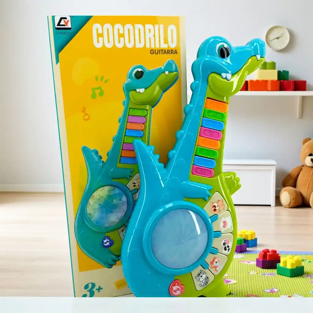Estimula los sentidos de tu bebé con esta increible guitarra músical perfecta paradesarrollar la creatividad. Regala diversión! Características: - No requiere de ensamblado - Incluye luces - Tiene sonidos - 4 modos de uso (nombre de animales, música, ritmos, preguntas) - Tiene sonidos de animales (vaca, gato, caballo, oveja, perro) Medidas guitarra: 37cm largo x 16cm ancho *Requiere 3 pilas AA(no incluidas)