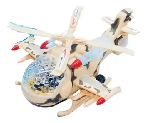 • Helicóptero militar de juguete • Cuenta con medidas de 26 x 24 x 14 • Tiene luces y sonido
