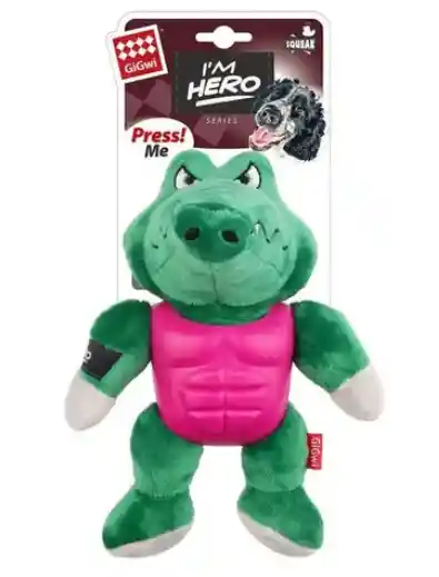Este juguete para perros con diseño de cocodrilo superhéroe combina lo mejor de dos mundos: la suavidad de un peluche y la resistencia de un mordedor. Cuenta con un torso rígido y texturizado en color rosa que ayuda a masajear las encías durante la masticación, mientras que su sistema de sonido interno (squeaker) se activa al presionarlo para captar la atención de tu mascota. Es una opción robusta y divertida, ideal para sesiones de juego interactivas que fomentan el ejercicio y reducen el estrés en perros de diversos tamaños.