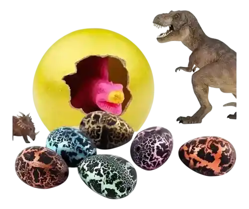 El objeto en la imagen es un huevo de juguete que eclosiona en el agua, revelando un dinosaurio en miniatura. El juguete se sumerge en agua, lo que hace que el cascarón se rompa y el pequeño dinosaurio que está dentro comience a crecer. El proceso de eclosión puede tardar varias horas, y el dinosaurio continúa creciendo a medida que absorbe el agua. Estos juguetes son populares entre los niños y a menudo se venden en varios diseños y colores. La etiqueta en el huevo advierte "DO NOT SWALLOW" (NO TRAGAR), lo que indica que no es apto para el consumo y probablemente contiene piezas pequeñas