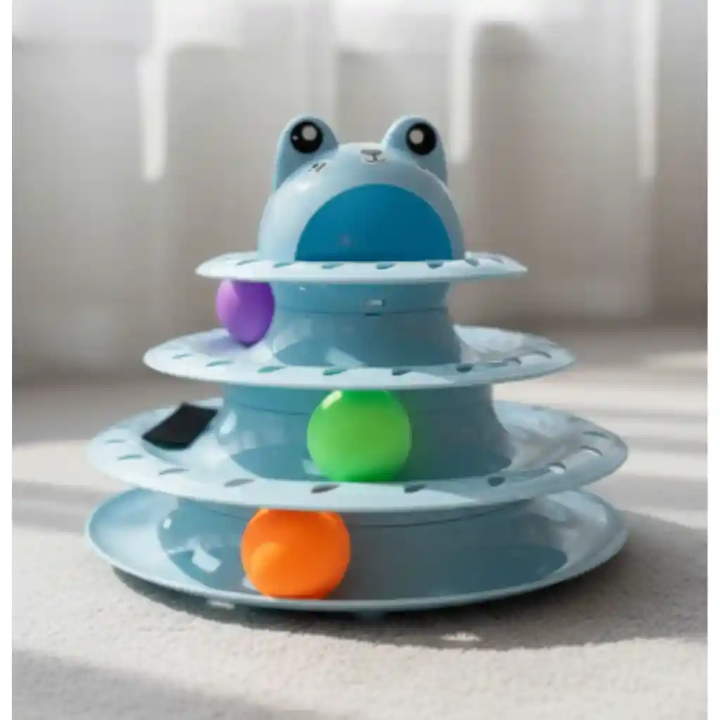 Mantén a tu gato entretenido, activo y estimulado con este divertido juguete interactivo de 4 niveles, diseñado especialmente para despertar su instinto de caza y juego. Cada nivel incluye una pelota giratoria integrada, sumando un total de 4 pelotas que se mueven al contacto de la patita de tu gato, brindando horas de diversión sin que las pelotas se salgan o se pierdan. ✨ Características principales: Torre interactiva de 4 niveles Incluye 4 pelotas giratorias, una en cada nivel Estimula el instinto natural de caza Ayuda a reducir el estrés y el aburrimiento Favorece la actividad física y mental Diseño estable y seguro Ideal para gatos de todas las edades