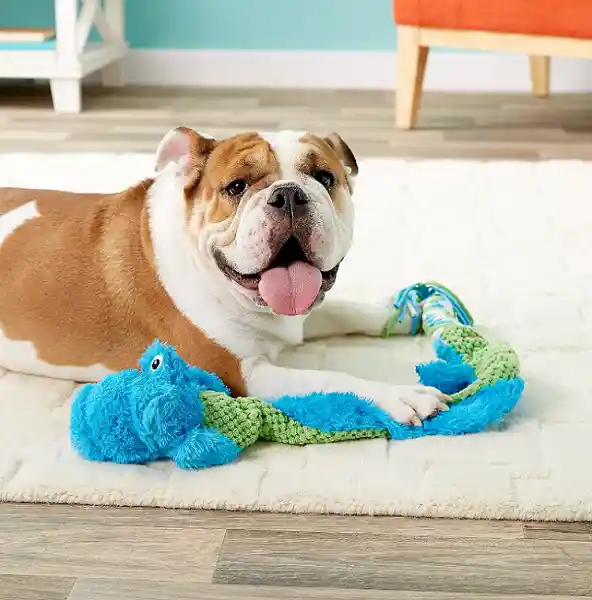 El juguete para perros KONG Winders Tails proporciona más de un metro de diversión y está diseñado para el juego interactivo con su cachorro. A los perros les encanta lanzar, traer y tirar de este emocionante juguete, que viene en cuatro adorables personajes de animales que incluyen cocodrilo. El cuerpo enrollado limpia y pule los dientes de su perro y el chirrido y las colas ayudan a atraer el juego. Beneficios clave Diseñado para el juego interactivo, a los perros les encanta tirar, recoger y tirar de estos emocionantes juguetes. Squeaker en el interior para mayor diversión El cuerpo en espiral pule y limpia los dientes durante el juego. Relleno mínimo para menos desorden en la casa Disponible en cuatro divertidos personajes para que puedas elegir tu favorito Se envía en una variedad de colores aleatorios y divertidos. Cada perro juega de manera diferente y, dado que no todos los juguetes son iguales, siempre es mejor vigilar de cerca a su cachorro en caso de que las cosas se pongan feas. El juego supervisado ayudará a que los juguetes duren más y, lo más importante, mantendrá a tu amigo seguro. Ningún juguete para perros es realmente indestructible, así que siempre retire el juguete del tiempo de juego si las piezas comienzan a romperse.