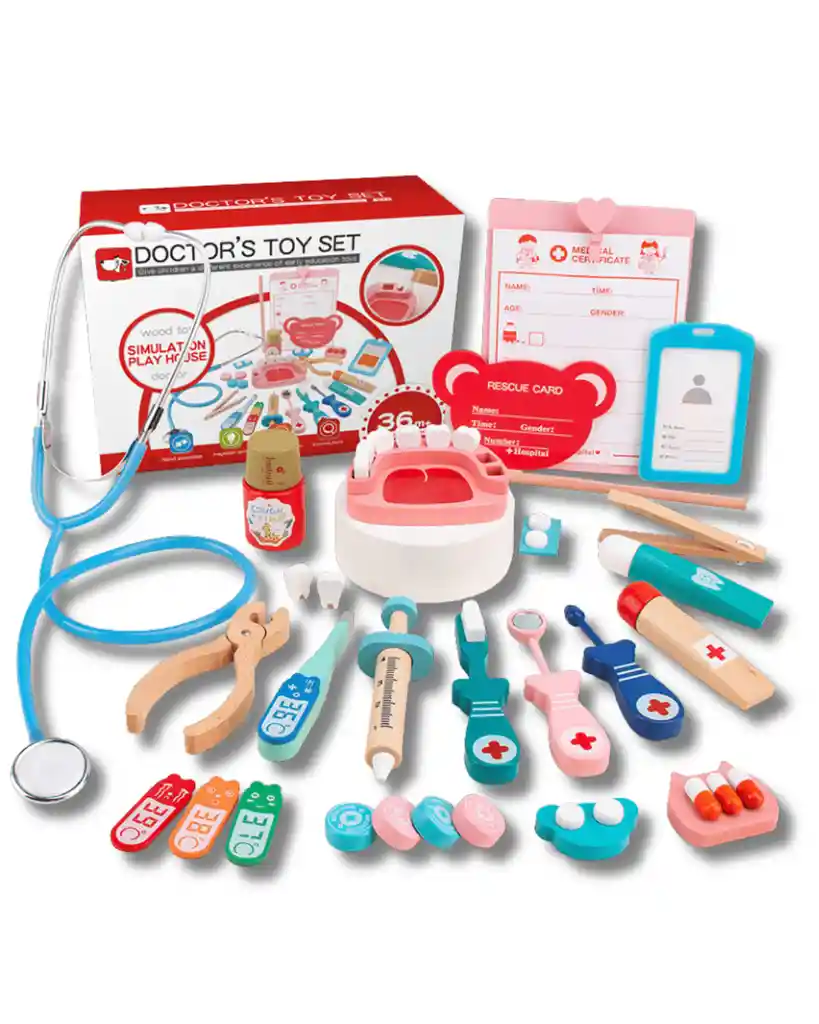 Este set de juguetes médicos es perfecto para que los niños jueguen a ser doctores mientras desarrollan habilidades importantes como la coordinación mano-ojo, la percepción de colores y la imaginación. Contiene accesorios realistas diseñados especialmente para manos pequeñas. 🔎 Características principales: ✅ Incluye estetoscopio, jeringa, termómetro, pinzas, botellas simuladas, tarjetas médicas, y más.