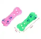 Juguete para mascotas elaborado en caucho resistente de 14 centímetros. Diseño de hueso con texturas en relieve con forma de huellas para un mejor agarre. Es delicado con los dientes de tu mascota mientras estimula su mordida. Su material no tóxico permite una limpieza mucho mas fácil y rápida. Color surtido: verde, naranja o rosado.