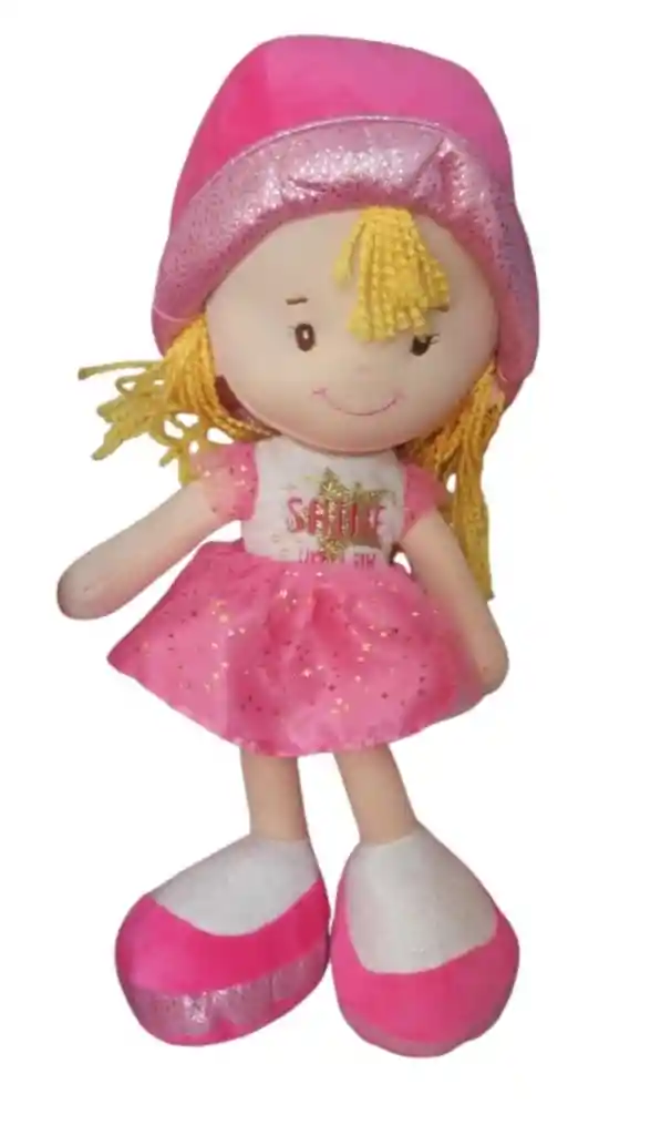 Empaque de regalo sin costo adicional, escríbenos al finalizar la compra. 2 años + Esta muñeca de trapo es perfecta para acompañar a las niñas en sus aventuras cotidianas. Su diseño incluye un encantador vestido rosa con detalles dorados y la palabra "Shine" en el pecho, lo que le otorga un toque especial y moderno. Además, su cabello de lana amarilla y su gran sombrero rosa añaden un estilo único. Con un cuerpo suave y tierno, la muñeca está fabricada con materiales amigables al tacto, lo que la hace ideal para abrazar. Sus grandes zapatos y vestido brillante captarán la atención de las pequeñas, promoviendo horas de juego creativo y compañía. Es perfecto para niñas de todas las edades que buscan una muñeca estilizada y adorable. Su apariencia dulce y su confección duradera garantizan que será un juguete favorito por mucho tiempo, además de un bonito regalo para ocasiones especiales. Tamaño: 40x 10x 8cm