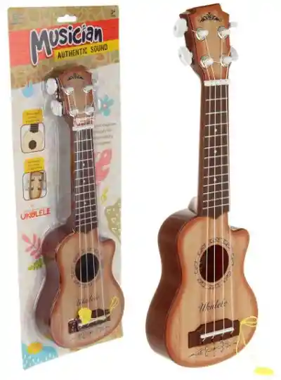 Es un instrumento infantil diseñado para introducir a los niños en el mundo de la música de manera divertida. Incluye una guitarra tipo ukelele y una púa, ideales para estimular el ritmo, la coordinación y la creatividad musical. Su diseño ligero y colorido facilita el manejo, siendo perfecto para el juego recreativo y el aprendizaje inicial.