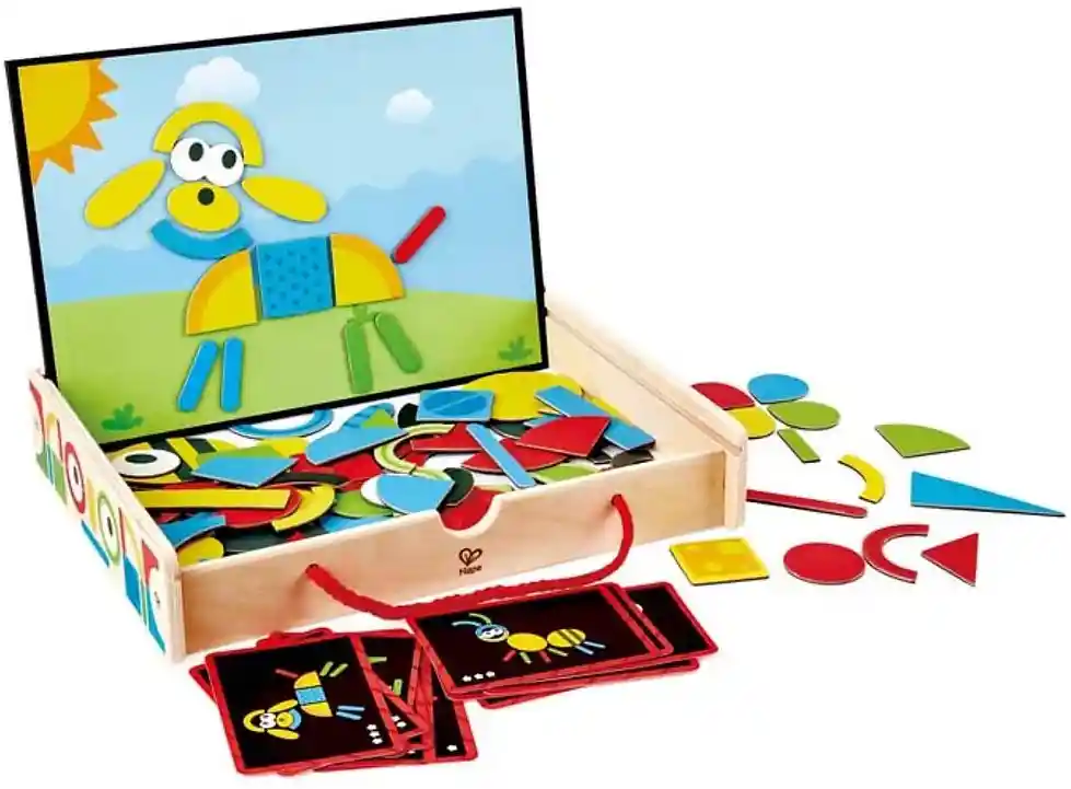 Empaque de regalo sin costo adicional, escríbenos al finalizar la compra. 3 años + Libera tu creatividad con esta fantástica caja de dibujo de formas magnéticas. Elige entre las 91 formas magnéticas incluidas y colócalas en la escena dibujada dentro de la tapa, o pégalas en el la otra cara de la caja en blanco y crea lo que más te guste. Pensado para desarrollar tres niveles de dificultad en la medida en que las creaciones de los niños se vuelven más complejas con el uso y la edad. Ideal para fomentar el pensamiento lógico y la enseñanza básica de geometría.