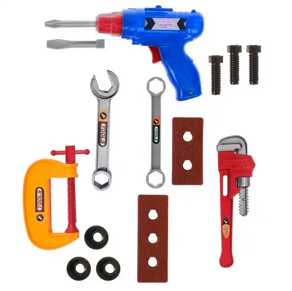 Hermoso set de herramientas de juguete diseñado para despertar la imaginación de niñas y niños. Incluye un taladro de juguete y otros accesorios que invitan a explorar su creatividad e ingenio mientras simulan divertidas actividades de construcción. Este set es el regalo perfecto para fomentar el juego interactivo y el desarrollo de habilidades motoras, ofreciendo horas de entretenimiento educativo. Ficha Técnica: Material : Plástico ABS Edad mínima recomendada : Mayores de 3 años Referencia: C4055 Certificado de conformidad: E5-0359-2021 ** _Para defectos de fábrica o retractos: \_Por favor revise el producto apenas lo reciba y antes de usarlo. No aplican ley de retracto o defectos de fábrica luego de usar el producto. Se manejan máximo 5 días para reportar defectos de fábrica (por ejemplo, producto funciona mal, piezas faltantes, rotas, etc). Para hacer efectiva la devolución el producto debe devolverse con el empaque original, el cual debe estar en buen estado, incluir todos los documentos y las partes completas y sin daños.