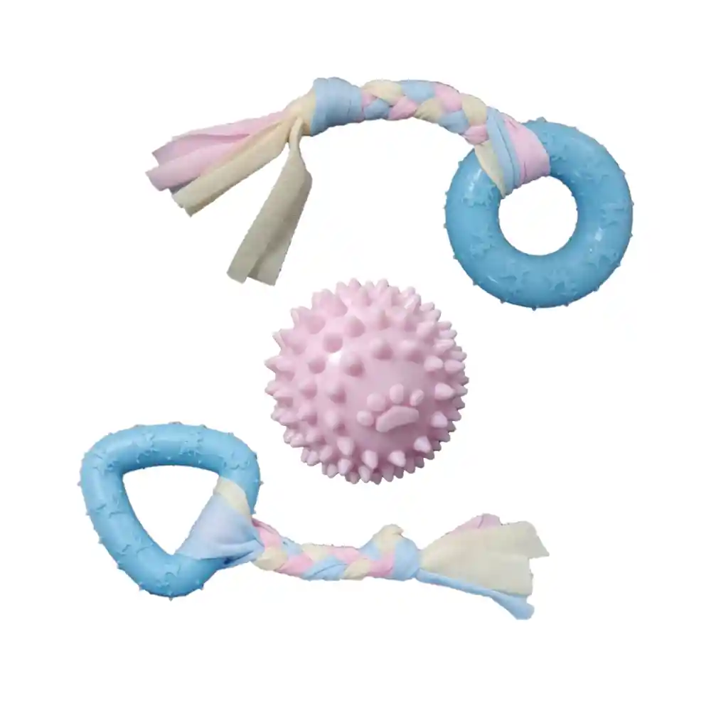 Juguete de colores pastel ideal para cachorros y perros pequeños con mordidas delicadas. Ideal para los primeros dientes hecho de materiales no tóxicos y sabes.