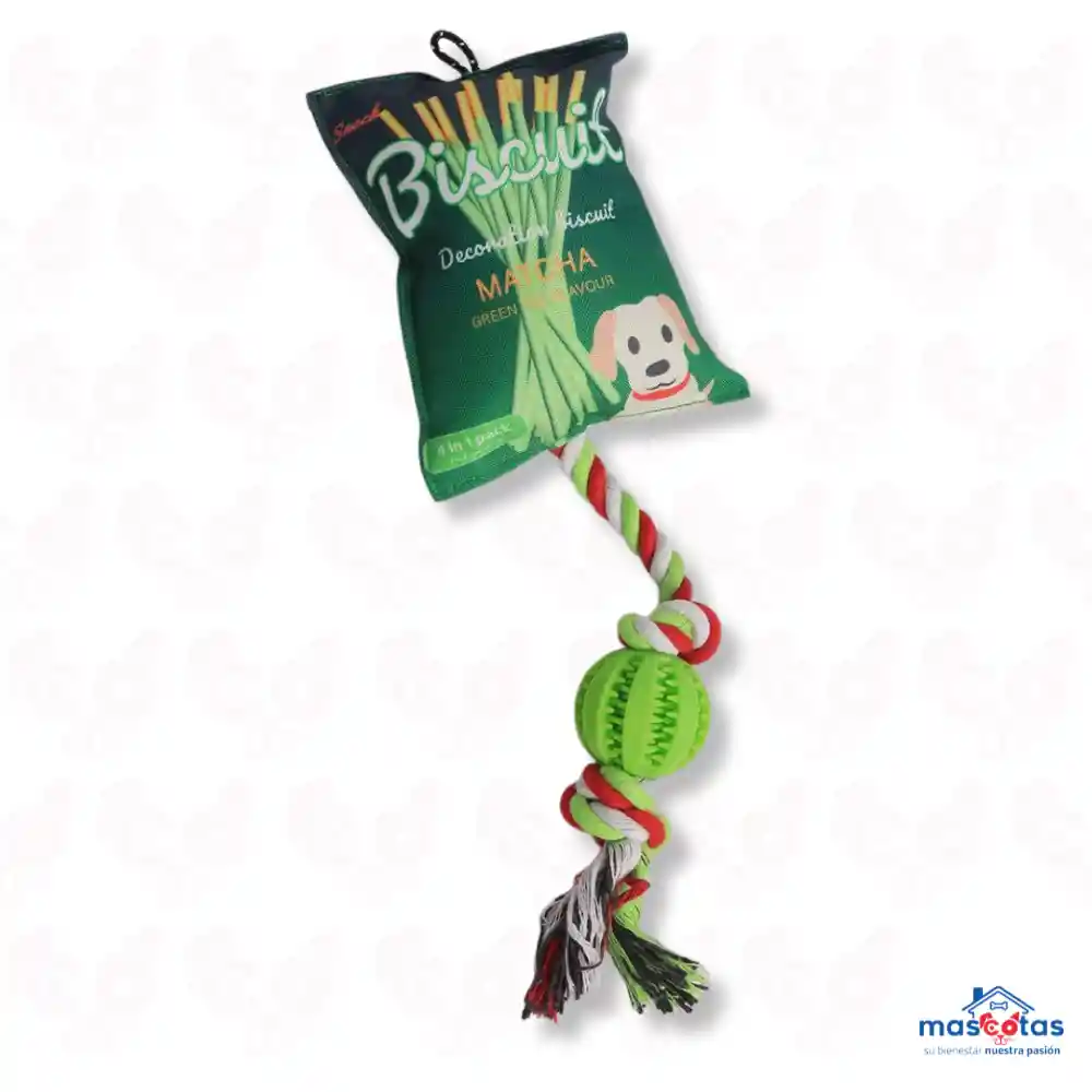 Este set incluye tres juguetes ideales para mantener a tu mascota entretenido y activo. Contiene con una cuerda duradera de nudos, pelota porta croquetas y una pequeña almohada con chirrido. Perfectos para juegos de tirar y aflojar, morder y masticar, estos juguetes son duraderos y atractivos para cualquier perro. (Colores Sujetos a Disponibilidad) Tipo de producto: Juguete mordedor con cuerda y pelota. Funcionalidad: Ideal para juegos de lanzar y traer, ayudando a remover la placa dental de la mascota. Diseño: Cuenta con una forma de almohadilla tipo galleta y materiales resistentes. Seguridad: Diseñado para entretenimiento controlado bajo la supervisión del dueño.