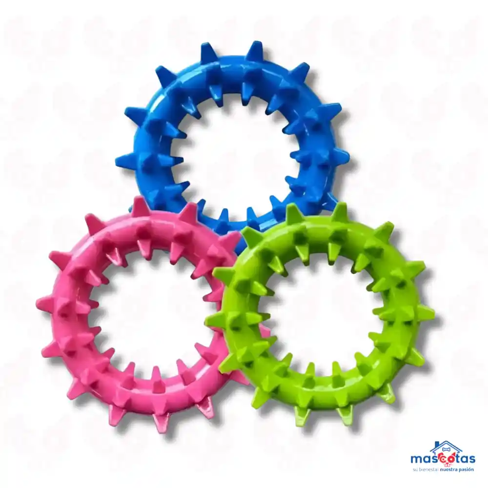 El Juguete Aro con Púas Grande es un mordedor diseñado específicamente para perros de razas medianas y grandes, enfocado en la salud dental y el entretenimiento interactivo Descripción General Material Resistente: Fabricado comúnmente en caucho natural o goma maciza de alta calidad, lo que le otorga durabilidad frente a mordidas constantes. Diseño Ergonómico: Su forma circular facilita que tanto el dueño como la mascota puedan sujetarlo firmemente para juegos de lanzar y recoger o de “tira y afloja”. Textura de Púas: Cuenta con relieves o “púas” de goma que masajean las encías y ayudan a limpiar los restos de comida de los dientes mientras el perro mastica. Beneficios Clave Salud Oral: La fricción de las púas durante la masticación contribuye a la remoción de placa dental y prevención de sarro. Estimulación Sensorial: El diseño con relieves proporciona una estimulación táctil que mantiene al perro interesado por más tiempo. Control de Ansiedad: Ayuda a canalizar el instinto natural de masticación, reduciendo el estrés y la ansiedad por separación al mantener a la mascota ocupada. Versatilidad de Juego: Es ideal para el ejercicio físico al aire libre, permitiendo fortalecer el vínculo mediante el juego compartido. Especificaciones Comunes Tamaño: Generalmente disponible en tallas L o XL, con diámetros que rondan los 15 cm para asegurar que sea adecuado para mandíbulas grandes. Variedad: Suele encontrarse en colores llamativos (verde, naranja, azul) y algunas versiones incluyen un “chifle” o sonido para aumentar el interés.