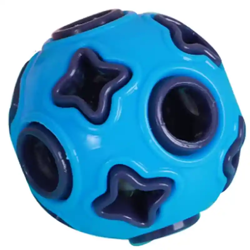 Pelota y/o Juguete para mascotas. Divertida pelota, con cascabel que mantendrá entretenido a tu mejor amigo, también puede funcionar como dispensador de snaks o premios. Color azul con forma de cuadro o gatitos. Ideal para jugar a la pelota, e incluso con su sonajero podrás identificar donde se encuentra tu peludo. Tamaño: Mediano Juguete Interactivo, Gato / Perro, Cascabelle 1 Juguete