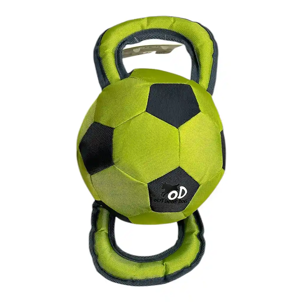 Espectacular juguete de pelota futbol grande con cogederas, ideal para juegos de tira y afloje.