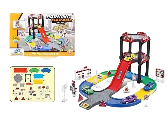 Convierte cualquier espacio en una emocionante pista de acción con este parqueadero de varios niveles. Ideal para que los niños se diviertan creando sus propias aventuras mientras desarrollan su imaginación. ✨ Incluye: • Garaje de estacionamiento de varios niveles • Pistas con rampa • Señales de tráfico para juego más realista • 4 carros de inercia listos para jugar 📏 Tamaño ideal: Armado mide aproximadamente 46 cm de largo x 25 cm de ancho, perfecto para jugar cómodamente sin ocupar mucho espacio. 👶 Edad recomendada: A partir de 3 años 🎯 Beneficios: • Estimula la creatividad y el juego imaginativo • Mejora la coordinación mano-ojo • Fomenta el juego independiente o en compañía 🎁 Perfecto para regalo: Un juguete entretenido y educativo que encantará a cualquier niño amante de los carros.