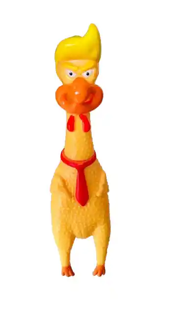 El pollo chillón de caucho para mascotas es un juguete bastante divertido, es hueco por dentro y su cabeza se separa del cuerpo por el pescuezo, donde tiene el dispositivo que emite el sonido una vez la mascota, perro o gato, lo estripan, para de esta forma emitir el sonido gracias al aire que sale por la boca, finalmente, escucharás un pollo cacarear, el sonido es bastante similar al real.