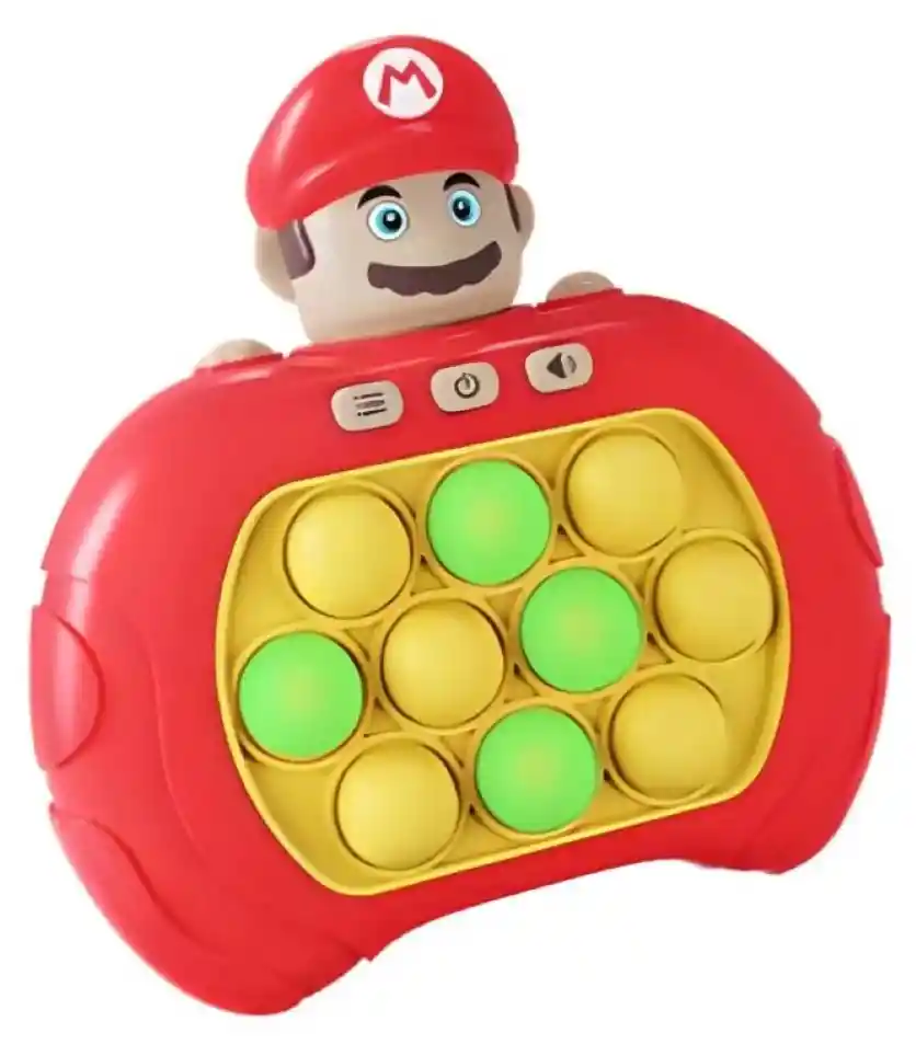 Pop It Mario Bros Luigi Electrico Luz Sonido Niños CARACTERISTICAS: * Juguete Sensorial, estimula la memoria * Tiene luces y sonido * Tres emocionantes modos de juego * Tiene un botón de encendido y apagado. * Diseño ergonómico * Tamaño ideal, fácil de transportar y manipular. * Apto para niños y adolescentes. DESCRIPCION: - Los juguetes pop it electrónico son divertidos y sencillos de manejar. Con tres emocionantes modos de juego, desafíos para un solo jugador, este juguete es perfecto para jugadores de todas las edades. Simplemente instala tres pilas AAA (no incluidas), ajusta el volumen a tu gusto y deja que el juego comience, lo que te traerá diversión sin fin. - Excelente diseño: la consola de pop it electrónico está hecha de material de silicona de alta calidad. Diseño ergonómico incluso sosteniendo y jugando durante mucho tiempo no sentirá dolor en las manos. El tamaño portátil hace que sea fácil disfrutar del juego en cualquier momento y en cualquier lugar. El volumen ajustable - Uso portátil: Gran valor porque puede jugar en cualquier lugar y en cualquier momento. Tiene múltiples modos para que lo mantenga entretenido (y desconectado), pone en funcionamiento las habilidades de memoria, no necesita wi-fi, puede llevarlo a citas, salas de espera, durante viajes, etc. ESPECIFICACIONES: * Tamaño: Ancho: 13 cm x Largo: 9 cm * Funciona con pilas (funciona con tres pilas AA, no incluidas) * Material: ABS.