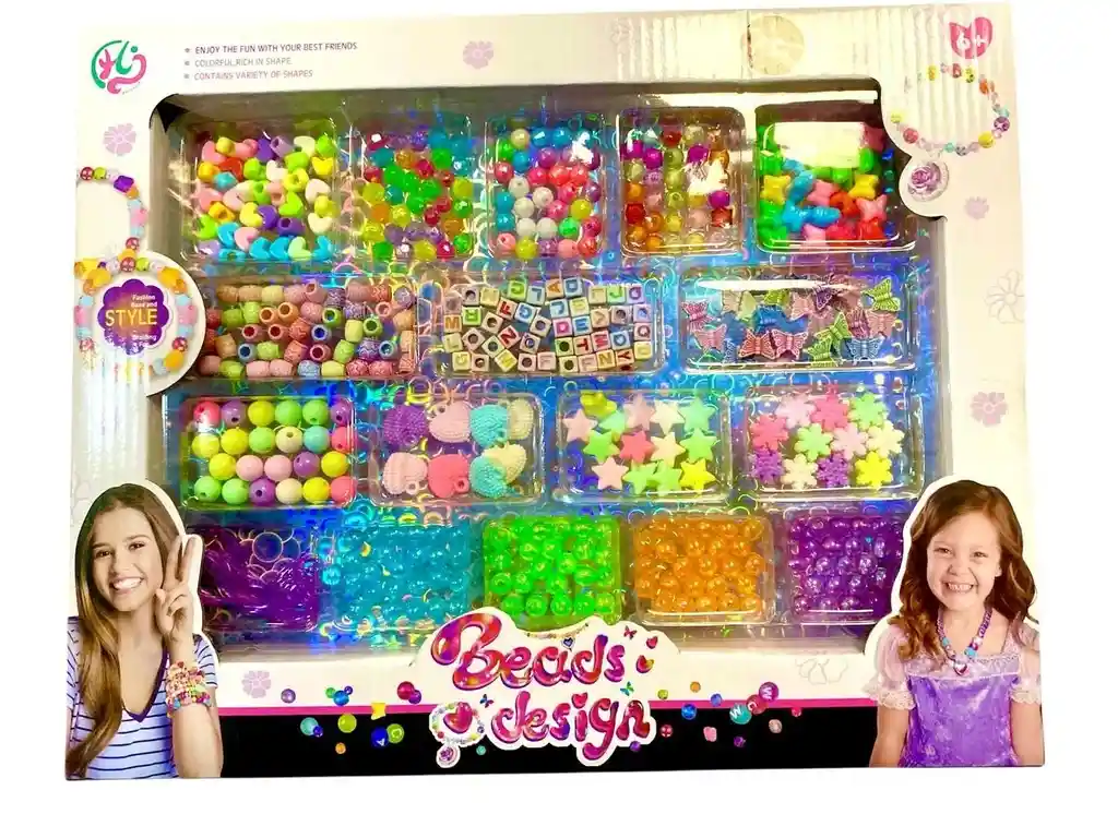 Set para armar pulseras y Collares con motivos unicos para las pequeñas soñadoras, interminables horas de mucha entretención diseñando sus propios accesorios. Podrán crear pulseras y Collares con estilos completamente originales y coloridos, combinándolas en un divertido patrón de colores, tamaños y formas ¡Comparte con amigas y creen juntas pulseras y collares de la amistad! Este es un juguete que desarrolla las habilidades creativas, la destreza y la imaginación, lo cual lo hace ideal para regalar, a esas niñas creadoras de sueños e ideas. Juguete para niñas de 6 años en adelante, medidas de la caja 27 cm de ancho x 34 cm de largo