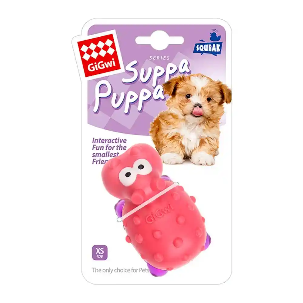 Fabricado con TPR (termoplástico) de alta calidad, chirriador, crestas para mantener los dientes limpios y suaves y duradero. Juguete del tamaño de la palma de la mano, para cachorros jóvenes