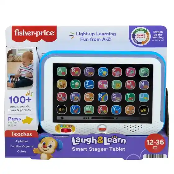 2 años + La Tablet de Aprendizaje Fisher-Price Ríe y Aprende enseña letras, objetos familiares, colores y más con más de 100 canciones, sonidos y frases. Las luces y botones coloridos captan la atención de los niños, promoviendo la interacción y el desarrollo cognitivo. Equipado con contenido de aprendizaje que evoluciona conforme crecen los niños, ofrece niveles progresivos de dificultad. Presiona cualquier botón para descubrir un mundo de aprendizaje y desarrollo de habilidades lingüísticas y motoras. Fabricada con materiales de alta calidad y segura para los niños, esta tablet es ideal para usar en casa o llevar de viaje, garantizando entretenimiento educativo en cualquier lugar. Tamaño: 28x 20x 4cm