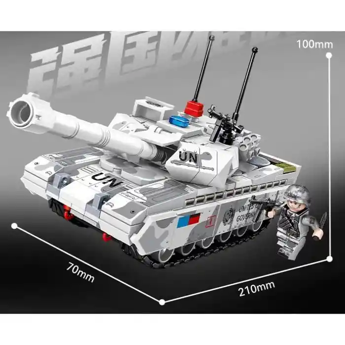 Juguete armable de 345 piezas con las que tendrás un tanque de guerra militar para desarrollar tu creatividad armándolo y luego podrás crear un sin número de historias de rol.