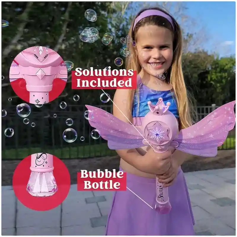 Varita de Burbujas de Princesa de Fantasía – Magia y Diversión para Niñas ¡Haz que la imaginación de tu hija vuele con la Varita de Burbujas de Princesa de Fantasía! Con un diseño encantador inspirado en cuentos de hadas, esta varita no solo crea burbujas mágicas, sino que también trae consigo un toque de fantasía y diversión. Con detalles como una varita rosa, una corona y alas extraíbles, este juguete se convertirá en el favorito de cualquier niña. Características Principales: Diseño Mágico de Princesa de Fantasía: La varita de burbujas está diseñada con un estilo de cuento de hadas, con colores suaves y encantadores que atraerán la atención de las niñas. Las alas extraíbles y la corona agregan un toque adicional de magia, convirtiéndola en un juguete de fantasía ideal para cualquier pequeña soñadora. Material Seguro y Respetuoso con el Medio Ambiente: Fabricada con materiales ABS no tóxicos, esta varita de burbujas es completamente segura para los niños. El material es suave y cómodo al tacto, y el líquido de burbujas es delicado y seguro para la piel, lo que la convierte en un juguete ideal para las manos pequeñas.