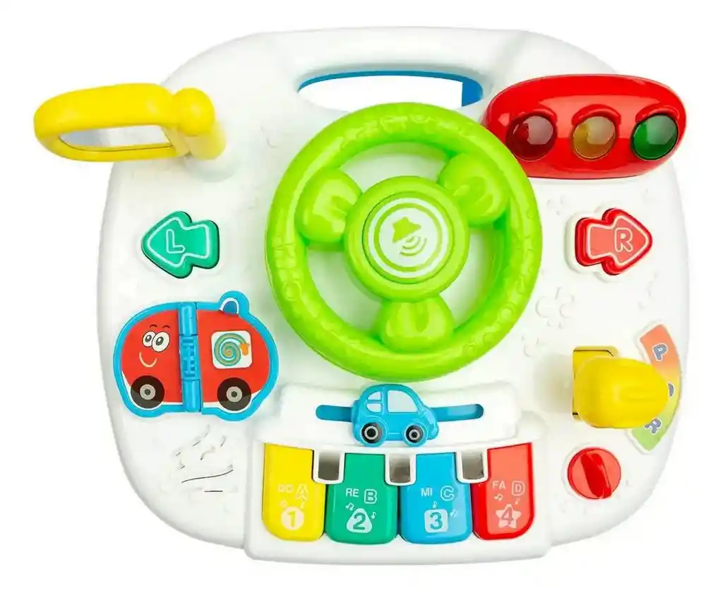 ¡Prepárate para vivir una aventura sobre ruedas llena de diversión y aprendizaje! Este volante interactivo con centro de actividades está diseñado especialmente para los más pequeños, quienes disfrutarán moviendo al simpático perrito hacia adelante y hacia atrás mientras giran el timón, accionan la palanca de señales, cambian de marcha y descubren sonidos realistas de automóvil. Con botones de colores que reproducen canciones, frases sobre animales y vehículos, un pianito musical de 4 teclas, flechas con sonidos de direccionales y un libro interactivo con sirenas y melodías, este juguete estimula la imaginación, el pensamiento lógico y el desarrollo sensorial a través del sonido, el movimiento y el tacto. Ideal para fomentar el juego simbólico mientras exploran conceptos como los opuestos y descubren el mundo que los rodea. /// El juguete incluye baterías /// Ficha Técnica: Dimensiones: 25 cm x 22 cm x 18 cm Funcionamiento: 3 Baterías AA Material: Madera - Plástico ABS Edad Recomendada: + 18 MESES Referencia: JB1401 Certificado de conformidad: E5-0359-2021 ** _Para defectos de fábrica o retractos: \_Por favor revise el producto apenas lo reciba y antes de usarlo. No aplican ley de retracto o defectos de fábrica luego de usar el producto. Se manejan máximo 5 días para reportar defectos de fábrica (por ejemplo, producto funciona mal, piezas faltantes, rotas, etc). Para hacer efectiva la devolución el producto debe devolverse con el empaque original, el cual debe estar en buen estado, incluir todos los documentos y las partes completas y sin daños.¡Prepárate para vivir una aventura sobre ruedas llena de diversión y aprendizaje! Este volante interactivo con centro de actividades está diseñado especialmente para los más pequeños, quienes disfrutarán moviendo al simpático perrito hacia adelante y hacia atrás mientras giran el timón, accionan la palanca de señales, cambian de marcha y descubren sonidos realistas de automóvil. Con botones de colores que reproducen canciones, frases sobre animales y vehículos, un pianito musical de 4 teclas, flechas con sonidos de direccionales y un libro interactivo con sirenas y melodías, este juguete estimula la imaginación, el pensamiento lógico y el desarrollo sensorial a través del sonido, el movimiento y el tacto. Ideal para fomentar el juego simbólico mientras exploran conceptos como los opuestos y descubren el mundo que los rodea. /// El juguete incluye baterías /// Ficha Técnica: Dimensiones: 25 cm x 22 cm x 18 cm Funcionamiento: 3 Baterías AA Material: Madera - Plástico ABS Edad Recomendada: + 18 MESES Referencia: JB1401 Certificado de conformidad: E5-0359-2021 ** _Para defectos de fábrica o retractos: \_Por favor revise el producto apenas lo reciba y antes de usarlo. No aplican ley de retracto o defectos de fábrica luego de usar el producto. Se manejan máximo 5 días para reportar defectos de fábrica (por ejemplo, producto funciona mal, piezas faltantes, rotas, etc). Para hacer efectiva la devolución el producto debe devolverse con el empaque original, el cual debe estar en buen estado, incluir todos los documentos y las partes completas y sin daños.