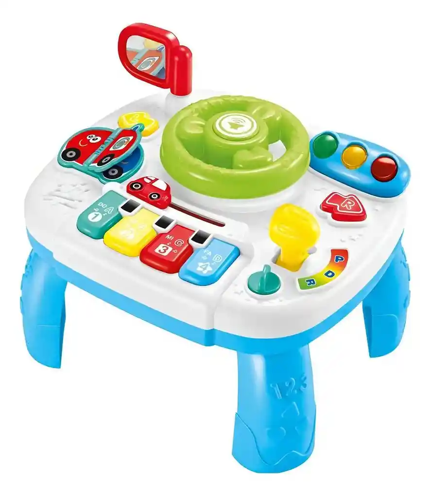 Prepárate para vivir una aventura sobre ruedas llena de diversión y aprendizaje! Este volante interactivo con centro de actividades está diseñado especialmente para los más pequeños, quienes disfrutarán moviendo al simpático perrito hacia adelante y hacia atrás mientras giran el timón, accionan la palanca de señales, cambian de marcha y descubren sonidos realistas de automóvil. Con botones de colores que reproducen canciones, frases sobre animales y vehículos, un pianito musical de 4 teclas, flechas con sonidos de direccionales y un libro interactivo con sirenas y melodías, este juguete estimula la imaginación, el pensamiento lógico y el desarrollo sensorial a través del sonido, el movimiento y el tacto. Ideal para fomentar el juego simbólico mientras exploran conceptos como los opuestos y descubren el mundo que los rodea. Ficha Técnica: Dimensiones: 25 cm x 22 cm x 18 cm Funcionamiento: 3 Baterías AA Material: Plástico ABS Edad Recomendada: + 18 Meses
