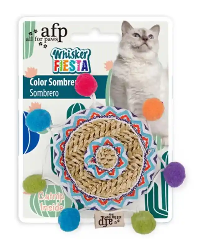 Juguete Whisker Fiesta - Contiene Catnip Fabuloso diseño de sombrero. Tiene colores llamativos. Cuenta con detalles decorativos de pompones. Dimensiones aproximadas 11x11x1,3 cm Es ideal para que tu gato juegue y se entretenga durante horas. Elaborado en materiales de alta calidad: Polipropileno y poliéster.