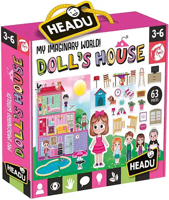 Empaque de regalo sin costo adicional, escríbenos al finalizar la compra. 3 años + Este set de juego ingeniosamente diseñado tiene un póster gigante que muestra una casa con todas las habitaciones. Usa las doce piezas de personajes grandes para jugar mientras se mueven de una habitación a otra. Haz que los personajes sean aún más divertidos agregando los ojos adhesivos. Con dieciséis objetos domésticos con formas y trece rompecabezas simples para armar, este divertido juego es perfecto para crear tus propias historias. ¡Libera la imaginación! Beneficios: Descubre personajes imaginarios imitar y animar inventar historias Ejercer habilidad manual fina Desarrollar la creatividad y la imaginación. Set de 63 piezas con póster, puzzles y personajes de cartón para jugar.