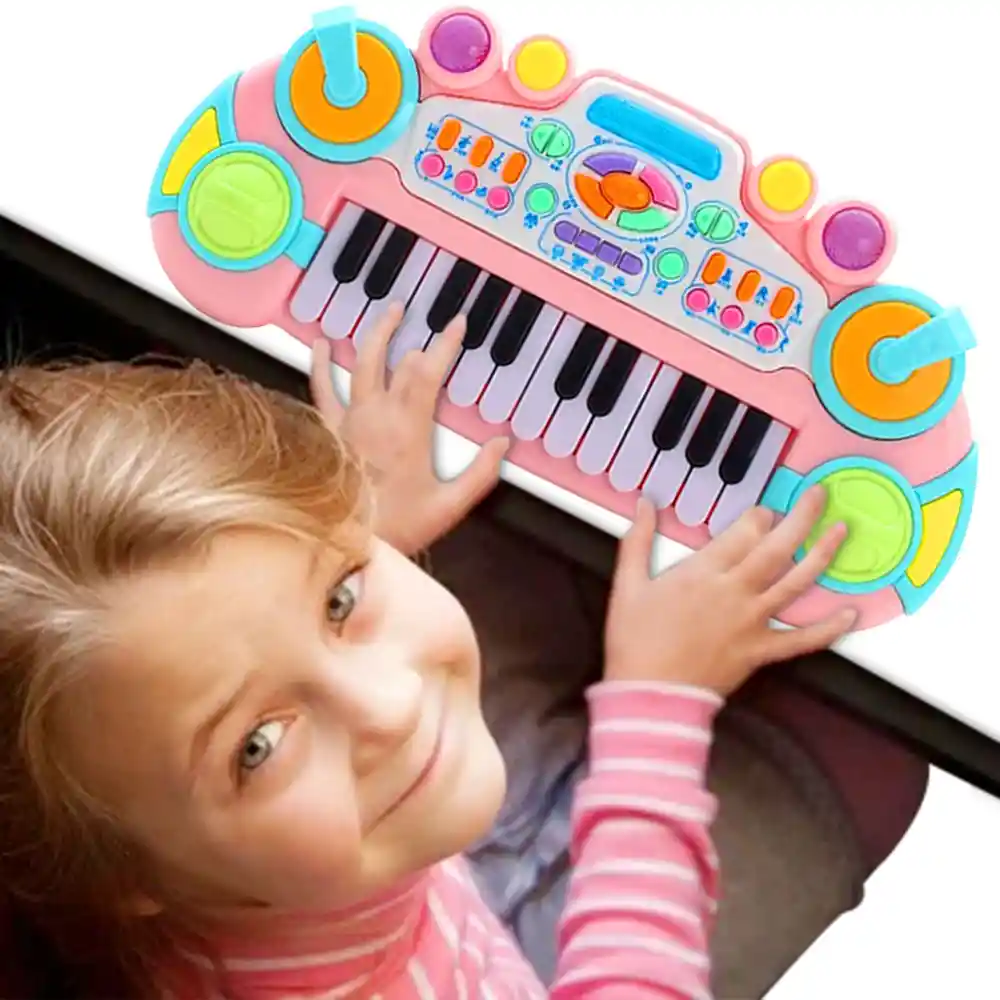 PIANO MUSICAL ELECTRONIC Increible juguete musical para que tus pequeños despierten el interés por la música y empiecen a conocer las notas musicales. Múltiples funciones como: -8 Canciones predeterminadas. -Teclas de ritmo. -Teclas de reproducción. - Teclas de grabación - 8 Canciones de demostración - Teclas de volumen - Teclas de modo - 24 Teclas de escala - 6 Claves de maderas - 4 Teclas de batería - 6 Teclas de música de baile - Piano del caos. Baterias: 3 pilas AA (Incluidas). Medidas Piano: 34 cm de Largo x 16 cm de Alto x 6 cm de Ancho. Medidas Empaque: 40.5 cm de Largo x 21.5 cm de Alto x 7 cm de Ancho. Material Principal: Plástico. Los juguetes siempre han desempeñado un papel importante en la vida de los niños, siempre considerando los gustos y deseos de los más pequeños de la casa y no tan pequeños, procurando dar la mejor de las sorpresas y ganarse esa sonrisa incomparable que los llena de felicidad. Juguetes, cuentos, y cualquier producto orientado a la satisfacción y desarrollo de los niños. Diversión, entretenimiento y aprendizaje.