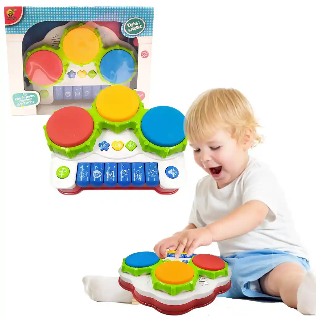 *Alta calidad y súper seguro: el juguete de tambor de piano con teclado musical está hecho de plástico ABS no tóxico y ecológico de alta calidad. Es completamente seguro e inofensivo, incluso si su hijo intenta morderlo cuando juega, no debe preocuparse por la seguridad. El borde redondo protegerá sus pequeñas manos mientras que la luz suave protegerá los ojos del niño. No se rompió ni se rascó incluso cuando se arrojó sobre el piso duro. *Educación de la primera infancia: los tambores musicales son azules, naranjas y rojos, una vista colorida que despierta el interés de su hijo y estimula su curiosidad hacia el sonido y los colores. Forma linda y botón colorido bueno para alimentar el interés del bebé en el juguete y desarrollar su competencia cognitiva de colores, patrones y animales, también útil para nutrir la inteligencia, la imaginación y la creatividad del bebé. *Cuatro modos divertidos: el juguete de tambor de piano con teclado musical tiene 4 modos para elegir. Cada modo tiene su propio conjunto de sonidos e instrumentos que se pueden tocar presionando las teclas del piano y los coloridos botones superiores. Escuche los sonidos de guitarra, trompeta, saxofón, teclado y tamborine, junto con el sonido de animales salvajes y lindos de la selva. Además, un botón de volumen azul le permite controlar el volumen del juguete musical fácilmente. *Diseño único: con una apariencia y un diseño exquisitos junto con botones bonitos, cada botón tiene un patrón animal único, tiene diferentes sonidos de animales. Lo que capta aún más la atención de su hijo mientras toca el tambor de piano musical con teclado. El juguete de tambor de piano con teclado musical puede despertar completamente la atención y el interés de su bebé.