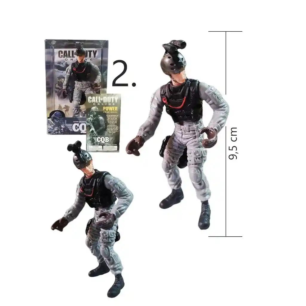 Kit Call Of DutyEstás preparado para la misión? Lleva las aventuras a casa con estos espectaculares soldados call of duty. Tres tipos de soldado para cada misión y des apoyo a tus compañeros. No lo dudes más y lleva la diversión a otro nivel con este genial juguete.* Tamaño soldados: 9.5 cm* Tamaño Caja: 10.5 x 6 cm