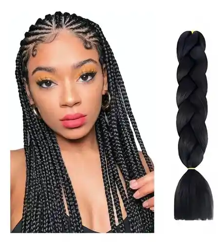 Jumbo Trenzas Extensiones De Cabello Sintético Kanekalon Negro 💇🏾♀️🖤 Las extensiones Jumbo Trenzas Kanekalon son ideales para crear peinados con trenzas voluminosas, duraderas y de aspecto natural. Su fibra sintética de alta calidad imita el cabello real, es suave al tacto, ligera y fácil de manejar, perfecta para trenzas africanas, box braids, twists y otros estilos. ✅ Material: Fibra sintética tipo Kanekalon ✅ Color: Negro ✅ Textura: Suave y ligera ✅ Uso: Trenzas, extensiones, peinados creativos y decorativos ✅ Fácil de peinar, separar y tejer ✅ Resistente y de larga duración 💡 Ideal para quienes desean un look moderno, natural y lleno de estilo, con cabello sintético de excelente calidad.