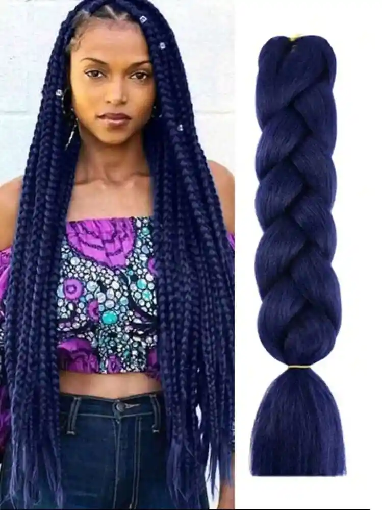 Jumbo Trenzas Extensiones De Cabello Sintético Kanekalon Azul Oscuro 💇🏽♀️💙 Las extensiones Jumbo Trenzas Kanekalon en color azul oscuro aportan un toque elegante, moderno y distintivo a tu estilo. Elaboradas con fibra sintética de alta calidad, ofrecen una textura suave, ligera y manejable, ideal para crear box braids, trenzas africanas, twists y otros peinados personalizados. ✅ Material: Fibra sintética tipo Kanekalon ✅ Color: Azul oscuro ✅ Textura: Suave, flexible y ligera ✅ Uso: Trenzas, extensiones y peinados decorativos ✅ Fácil de peinar, separar y trenzar ✅ Duradera y de aspecto natural 💡 Perfecta para quienes desean un look sofisticado, original y lleno de estilo, con acabado profesional y resistente.