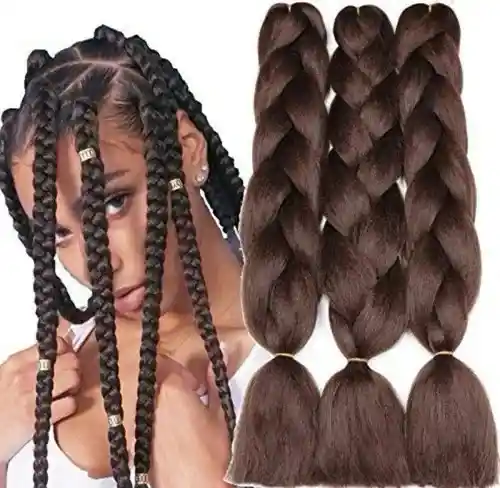 Jumbo Trenzas Extensiones De Cabello Sintético Kanekalon Castaño Oscuro 💇🏾♀️🤎 Las extensiones Jumbo Trenzas Kanekalon en color castaño oscuro ofrecen un aspecto natural, elegante y versátil, ideal para todo tipo de peinados con trenzas. Su fibra sintética de alta calidad imita perfectamente el cabello real, siendo suave, ligera y fácil de manejar, perfecta para box braids, trenzas africanas, twists y estilos personalizados. ✅ Material: Fibra sintética tipo Kanekalon ✅ Color: Castaño oscuro ✅ Textura: Suave, ligera y flexible ✅ Uso: Trenzas, extensiones y peinados decorativos ✅ Fácil de peinar, separar y tejer ✅ Duradera y de aspecto natural 💡 Ideal para quienes buscan un look clásico, natural y con estilo, con acabado profesional y resistente.