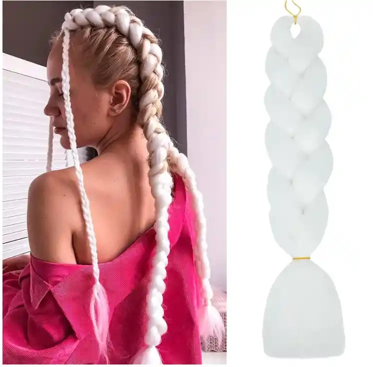 🤍 Jumbo Trenzas Extensiones De Cabello Sintético Kanekalon – Color Blanco ❄️ ¡Luce un estilo elegante y moderno con un toque único! 💫 Estas extensiones tipo Jumbo están elaboradas con fibra sintética Kanekalon, ligera, suave y con apariencia natural. Perfectas para box braids, trenzas africanas, twist, crochet y peinados creativos. ✨ Características: 💇♀️ Fibra sintética de alta calidad tipo Kanekalon 🤍 Color: Blanco puro, ideal para looks llamativos o combinaciones de tonos 🔥 Se puede sellar con agua caliente 🌟 Textura sedosa y fácil de manejar 🧵 No se enreda ni se apelmaza fácilmente 💫 Perfectas para quienes buscan un look elegante, moderno y lleno de estilo. 📦 Se envía color según disponibilidad o según el tono seleccionado.