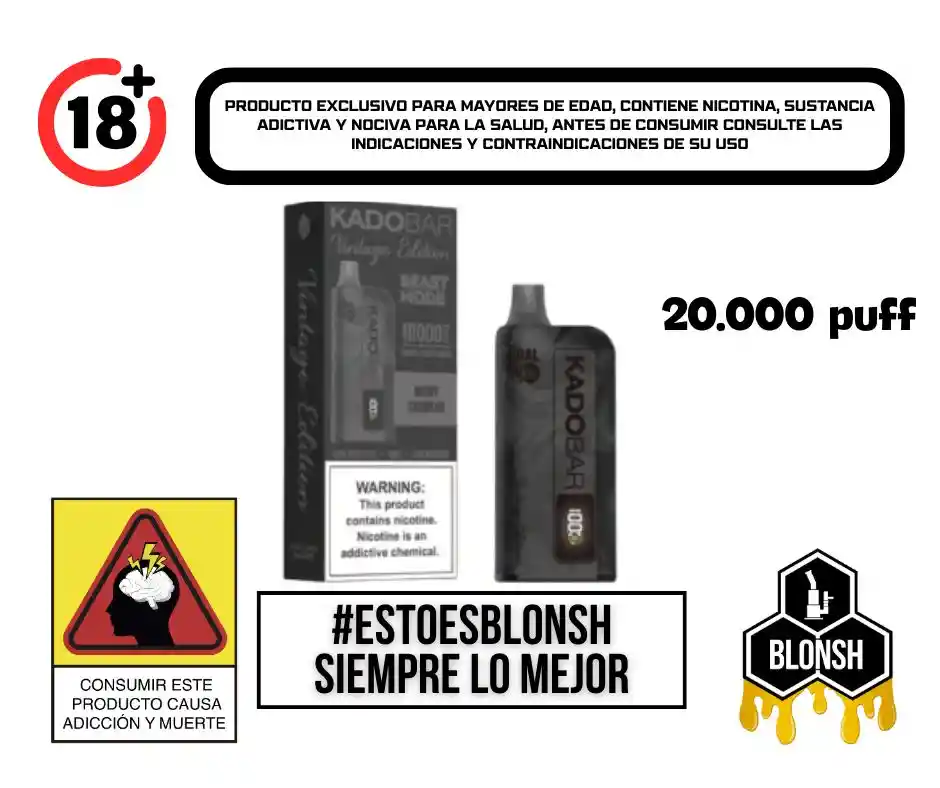 Presentamos el epítome del vapeo de lujo: Kado Bar Vintage Edition, ahora con el irresistible sabor a caramelo de fresa. Viaja al pasado con cada calada, mientras la dulce esencia de las fresas maduras y los caramelos azucarados deleitan tu paladar. Elaborado con precisión y pasión, este vaporizador de inspiración vintage promete una experiencia sensorial incomparable. Una fusión decadente de sabores Deléitese con la rica armonía de sabores meticulosamente combinados a la perfección. La barra Strawberry Candy Kado Vintage Edition ofrece una sinfonía de dulzura, en la que cada inhalación lo envuelve en la esencia de las fresas recién recolectadas, complementada con el encanto nostálgico de los dulces clásicos. Deje que las deliciosas notas bailen en su paladar, dejando una dulzura persistente que cautiva los sentidos. Rendimiento inigualable, calidad inigualable Mejora tu experiencia de vapeo con el rendimiento superior y la calidad inquebrantable de Kado Bar Vintage Edition. Diseñado con tecnología de vanguardia, cada bocanada ofrece un vapor uniforme y suave , lo que garantiza una experiencia satisfactoria en todo momento. Con una enorme capacidad de 20 000 bocanadas, disfruta de sesiones de vapeo prolongadas sin la molestia de recargas, lo que lo convierte en el compañero perfecto para los entusiastas en movimiento. Diseño elegante, elegancia atemporal Adopte la sofisticación con el diseño elegante y la elegancia atemporal del Kado Bar Vintage Edition. Su perfil delgado y compacto se adapta cómodamente a su mano, mientras que la sorprendente estética de inspiración vintage lo convierte en una pieza destacada dondequiera que vaya. Elaborado con atención al detalle, cada aspecto rezuma lujo, desde el acabado metálico hasta los intrincados relieves, elevando su experiencia de vapeo a nuevas alturas. Redescubre la alegría de vapear Ya sea que seas un vapeador experimentado o nuevo en el mundo del vapeo, El Kado Bar Vintage Edition de Strawberry Candy promete un viaje inolvidable de sabor y satisfacción. Abraza la nostalgia de antaño con un toque moderno y redescubre la alegría de vapear con cada calada. Eleva tus sentidos, Satisface tus antojos y sumérgete en la lujosa experiencia de Kado Bar Vintage Edition.