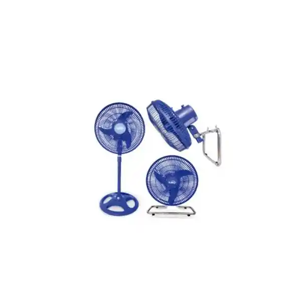 3 Aspas de 10" Pulgadas; 3 en 1 : Pedestal; Mesa o Pared; Función Giratoria de 80°; Cuerpo Metálico y Plástico y Potencia: 47 W de Potencia. 2 Años Garantía / Caja Individual. Garantía 24 Meses