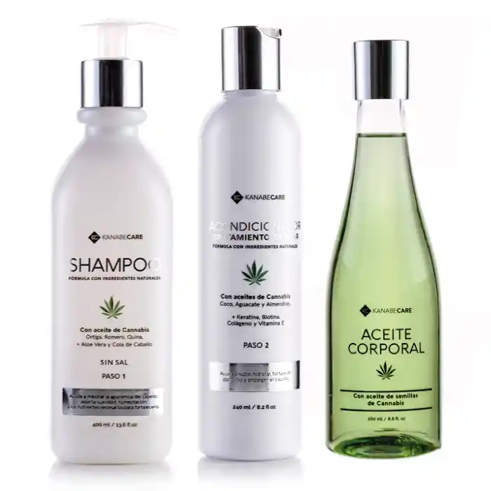 Kit Shampoo con aceite de cánnabis 400ml + Acondicionador 240 ml+ Aceite Corporal 240 ml Para Mujer
