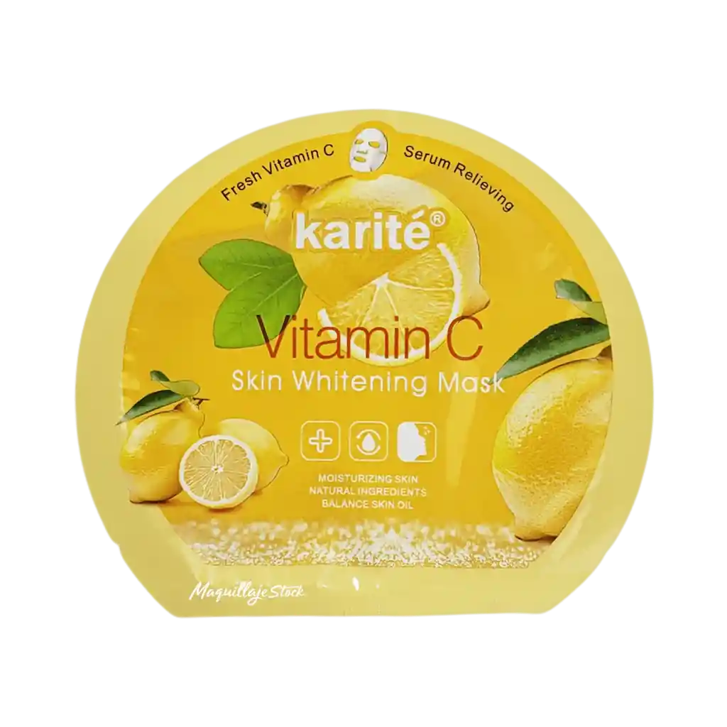 Mascarilla de Velo de la marca Karité con Vitamina C, Modo de uso: Aplica sobre piel limpia el velo y dejalo actuar de 10 a 15 minutos, retiralo y haz delicados masajes con el excedente de serum en tu piel. Uso recomendado de 1 aplicación, sin embargo se puede usar hasta 2 veces