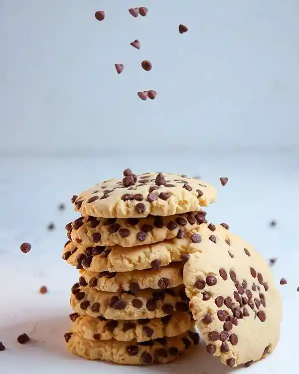 Producto artesanal, sin conservantes y sin azúcares añadidos. Producto vegano. Consérvese refrigerado de 0°C a 3°C y/o congelado. Peso neto 200g – Porciones 4 INGREDIENTES: Harina de grano entero de arroz, harina de maíz, fécula de maíz, aceite de oliva virgen extra, aceite de almendras y chips de chocolate semi amargo 70% (pasta de cacao, manteca de cacao, panela).