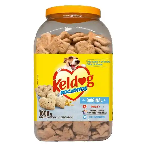 Los Bocaditos de Galletas Para Perro Keldog Son el Complemento Ideal Para Consentir a tu Mascota en Cualquier Etapa de su Vida. Su Fórmula Sin Colorantes Aporta Nutrición y Sabor en Cada Crujido Ayudando a Mantener su Energía y Bienestar Diario Como Parte de Una Dieta Balanceada.